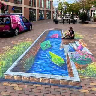 A street painting or mural is an interactive work of art that attracts a lot of attention. The works are often shared on social media, because the visitor can be part of the artwork, which makes it so much fun for young and old!